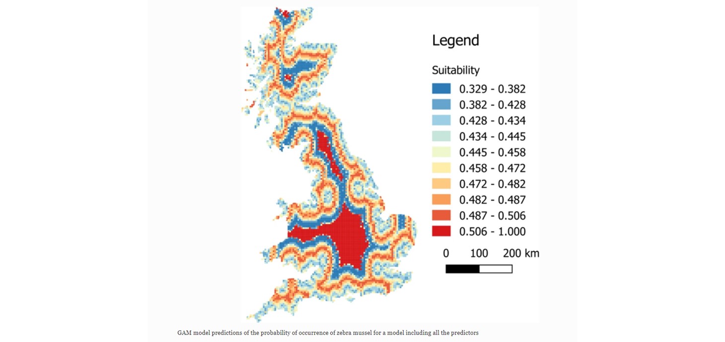 In this study, the research team examined the distribution of the zebra mussel in Great Britain using a model to generate maps that can predict future dispersion. The model shows that distance to boat ramps is the best way to predict the mussel’s distribution - and mussels are more likely to be present within 3 km upstream of boat ramps.