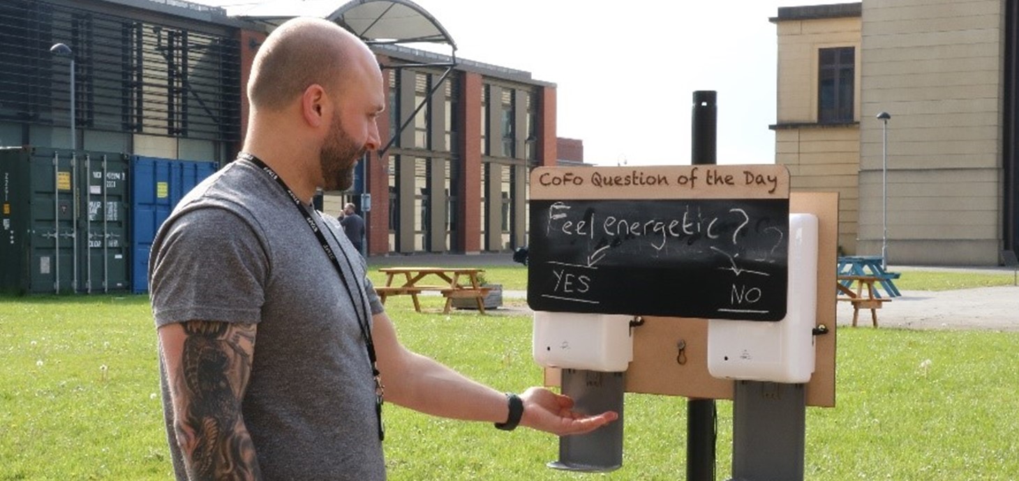 Squirty Voter is public engagement technology pioneered by researchers at the Cherish-DE project, Gavin Bailey and Dr Cameron Steer, which can help keep people stay safe and stop the spread of COVID-19 by incorporating regular hand sanitising into the engagement tool.