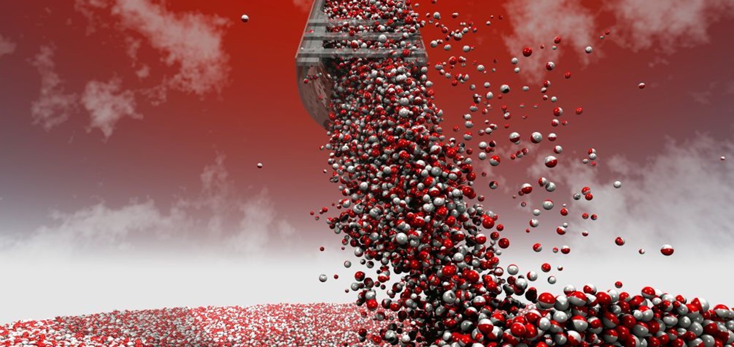 A model of coke and iron being loaded into a blast furnace, which Swansea researchers developed for Port Talbot steelworks, improving efficiency and reducing energy use (Credit: Marc Holmes and Steve Brown)