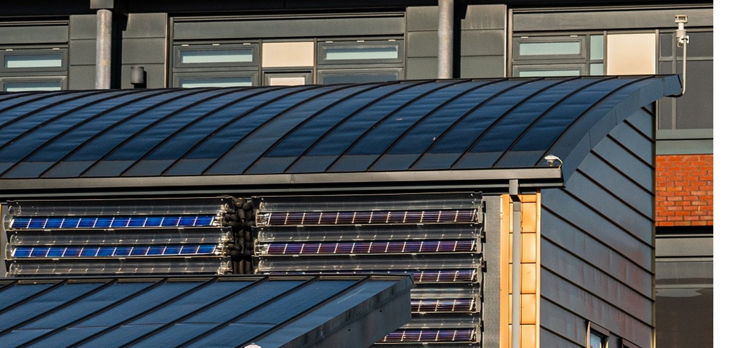 Building Integrated Solar Panels, supplied by BIPVco, on the roofs of the Active Buildings at Swansea University, which generate, store and release their own electricity