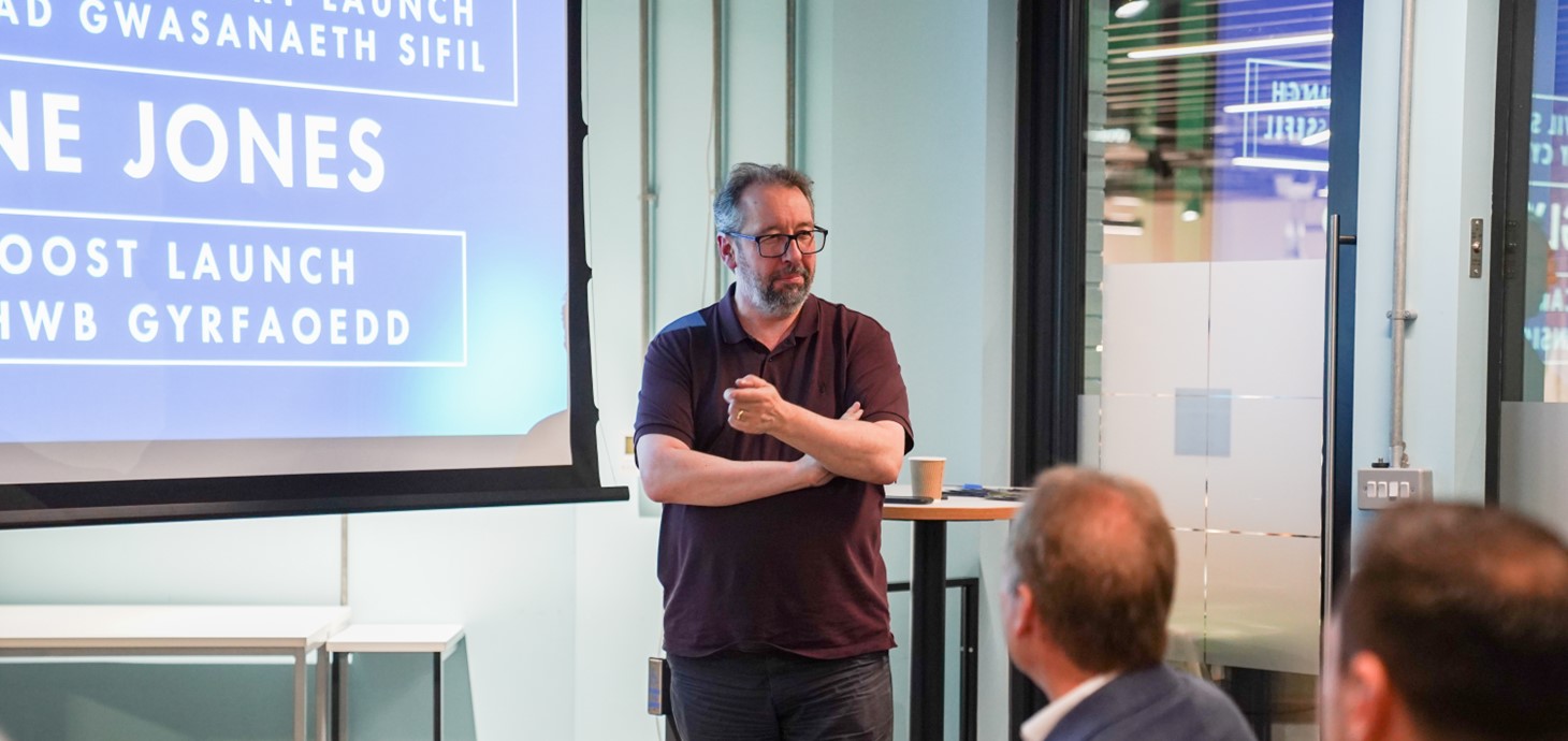 Glynne Jones CBE, Director of the Office of the Secretary of State for Wales, speaking at the event.