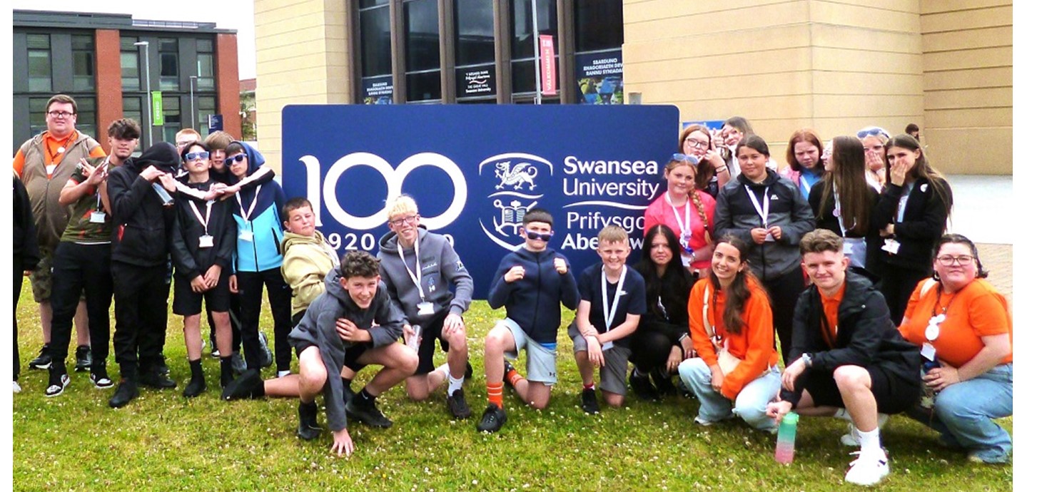 Pupils from Dylan Thomas School in Swansea, pictured at Swansea University's Bay Campus, during their recent three-day stay on campus, organised by the Reaching Wider team