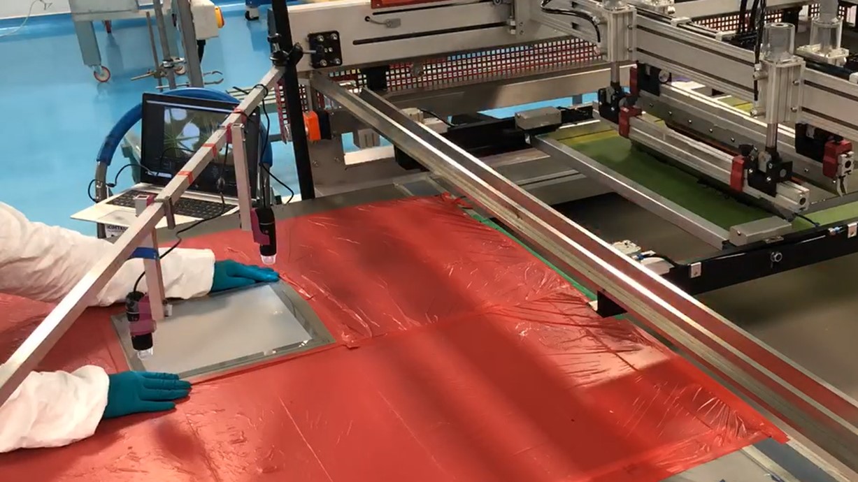 A large area perovskite solar module being manufactured. Credit: SPECIFIC Innovation and Knowledge Centre.