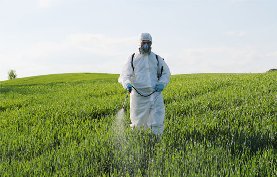 Person spraying crops with pesticide
