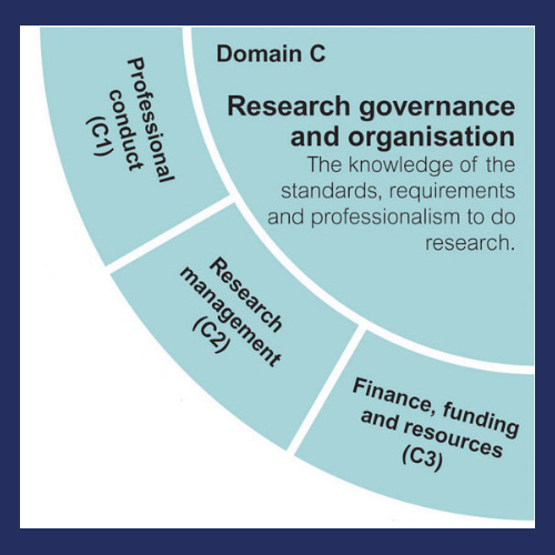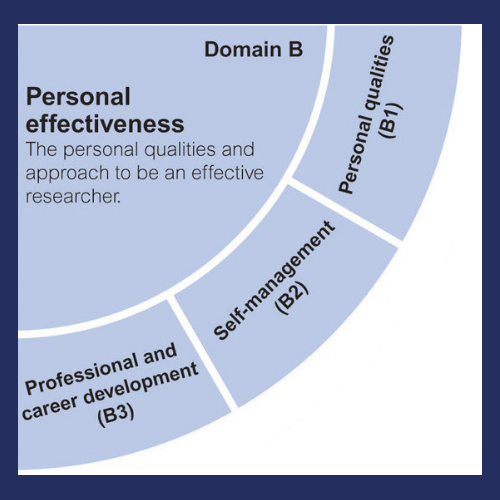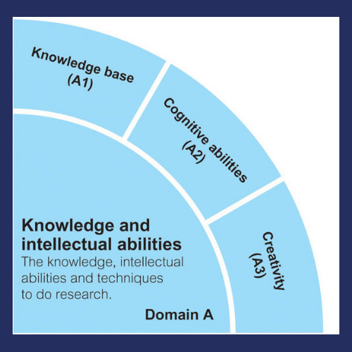 The RDF covers 4 areas or "domains" of learning, and twelve sub-domains, encompassing the knowledge, intellectual abilities, techniques and professional standards to do research, as well as the personal qualities, knowledge and skills to work with others and ensure the wider impact of research.