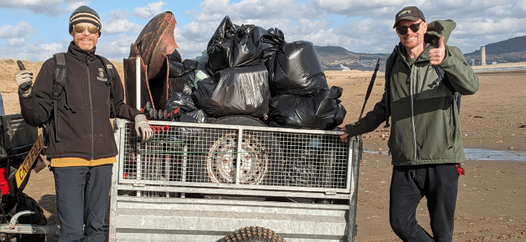 A full trailer of waste was collected, and Chris from Zombie Plastics got testing on the beach to see what he could use back at base for some awesome circular economy products for our team to raise awareness of our beach cleans, and the actions we take to protect Crymlyn Burrows our SSSI.